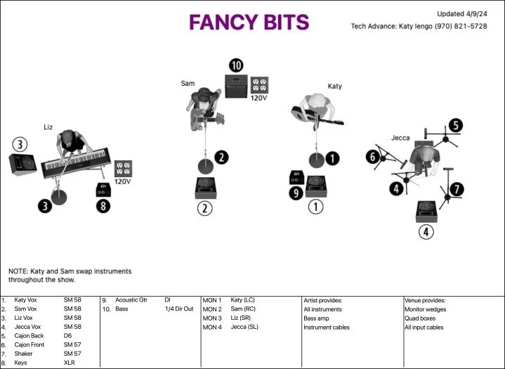 Live, the band radiates charisma. From their appearances at The Magic Rat, The Mishawaka, and FoCoMX, to intimate sets and podcast features (Magnolia Sessions, Laxin’ At The Lair), they’ve built a growing fanbase across the Front Range and beyond. Sparkly outfits, powerhouse harmonies, and crowd-favorite singalongs are all part of the Fancy Bits experience.